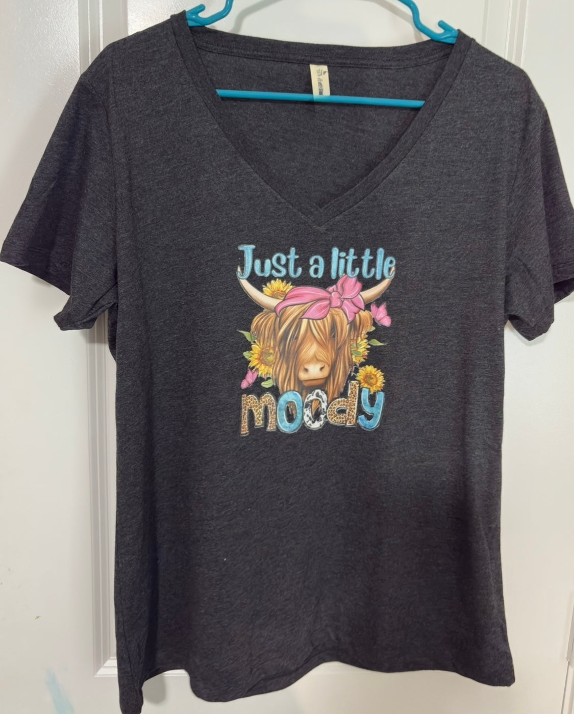 "Unleash your playful side with our Just a Little Moody t-shirt. This top is perfect for those who don't take themselves too seriously. Express your mood in a fun and lighthearted way.