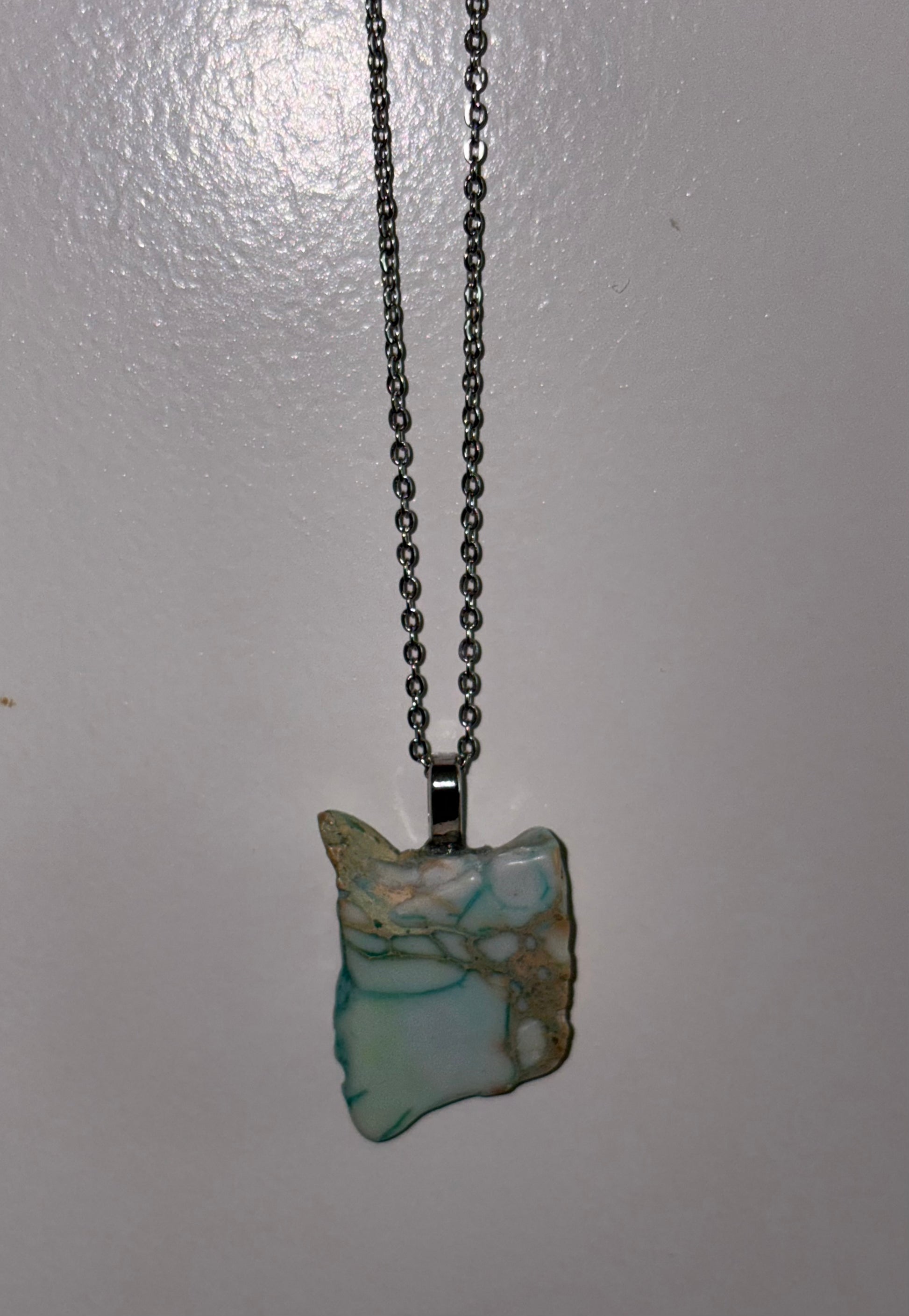 304 Stainless Steel 18k gold filled calendering necklace with Variscite 16”